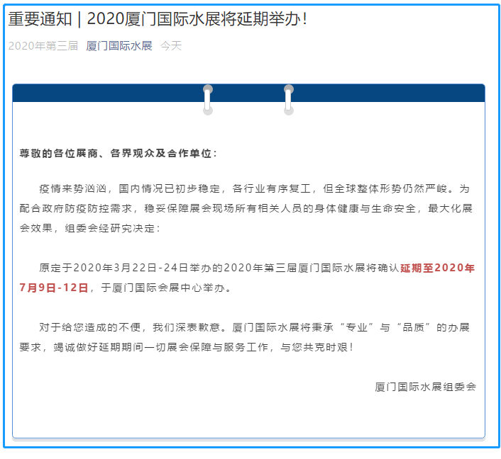 關(guān)于CBBE-2020展覽會(huì)延期舉辦的通知